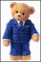 Cherished Teddies Figurine. Series: Military. Air Force Uniformed Bear. Introduced 2000. List Price: $17.50.