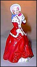 Royal Doulton Figurine. Red and White. Miniatures - Ladies Series. Height: 4''. Issued 1988-98. List Price: $200.00